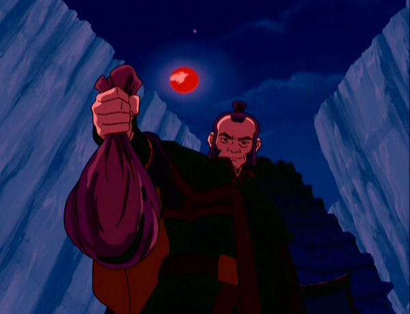 L'amiral Zhao à la fin du Livre 1 d'Avatar the last Airbender, sur le point de détruire l'esprit de la lune, sous les regard horrifiés des autres personnages. Ce mec est devenu totalement taré sur la fin, et ça n'échappe à personne, là où dans le film, le Seigneur du Feu est en mode "détruisez la lune, on va éliminer les maîtres de l'Eau !" comme ça, dans le plus grand des calmes -_-'